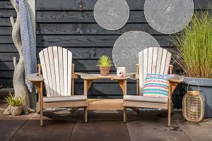 Adirondack stoelen worden vaak gecombineerd met andere adirondack tuinmeubelen. Zo stel je zelf een complete adirondack tuinset samen. Je kunt daarbij denken aan een voetenbankje, bijzettafel of speciale tuinkussens voor adirondack stoelen.