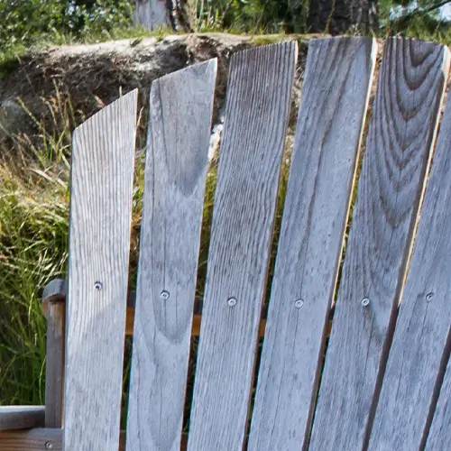 De houten latten waar de Comfy Chairs van gemaakt zijn, worden gezaagd uit hele planken. Dat geeft een prachtig, natuurlijk resultaat. Je ziet in de latten de van nature aanwezige kleurschakeringen terug. Dit betekent ook dat er kleurverschil tussen de latten mogelijk is. Dat hoort bij het natuurlijke materiaal; iedere Comfy Chair is 100% uniek. Na verloop van tijd, als de meubels gaan vergrijzen, wordt dit effect minder.