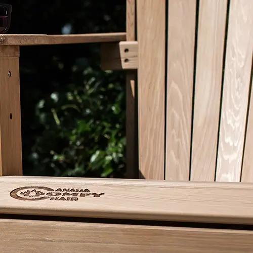 In de eerste plaats is red cedar een heel mooie houtsoort. De onderdelen van Comfy Chairs worden gezaagd uit hele planken. Hierdoor blijf je de natuurlijke kleurschakeringen zien, die het hout bevat.