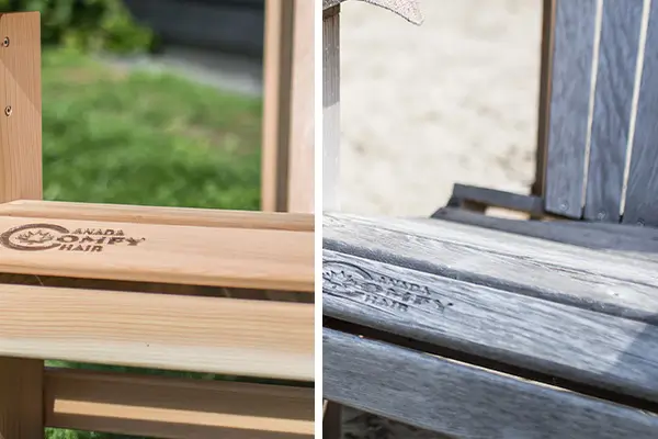 Nieuwe Comfy Chairs hebben een lichtbruine kleur. Na verloop van tijd zal het hout vergrijzen. Liefhebbers van cederhout vinden dit vaak mooi, maar je kunt ook proberen de bruine kleur zo lang mogelijk te behouden. Hiervoor kun je gebruik maken van een houtolie voor tuinmeubelen. Je kunt dit kopen bij vrijwel alle bouwmarkten. De olie trekt in het hout en vertraagt de vergrijzing.
